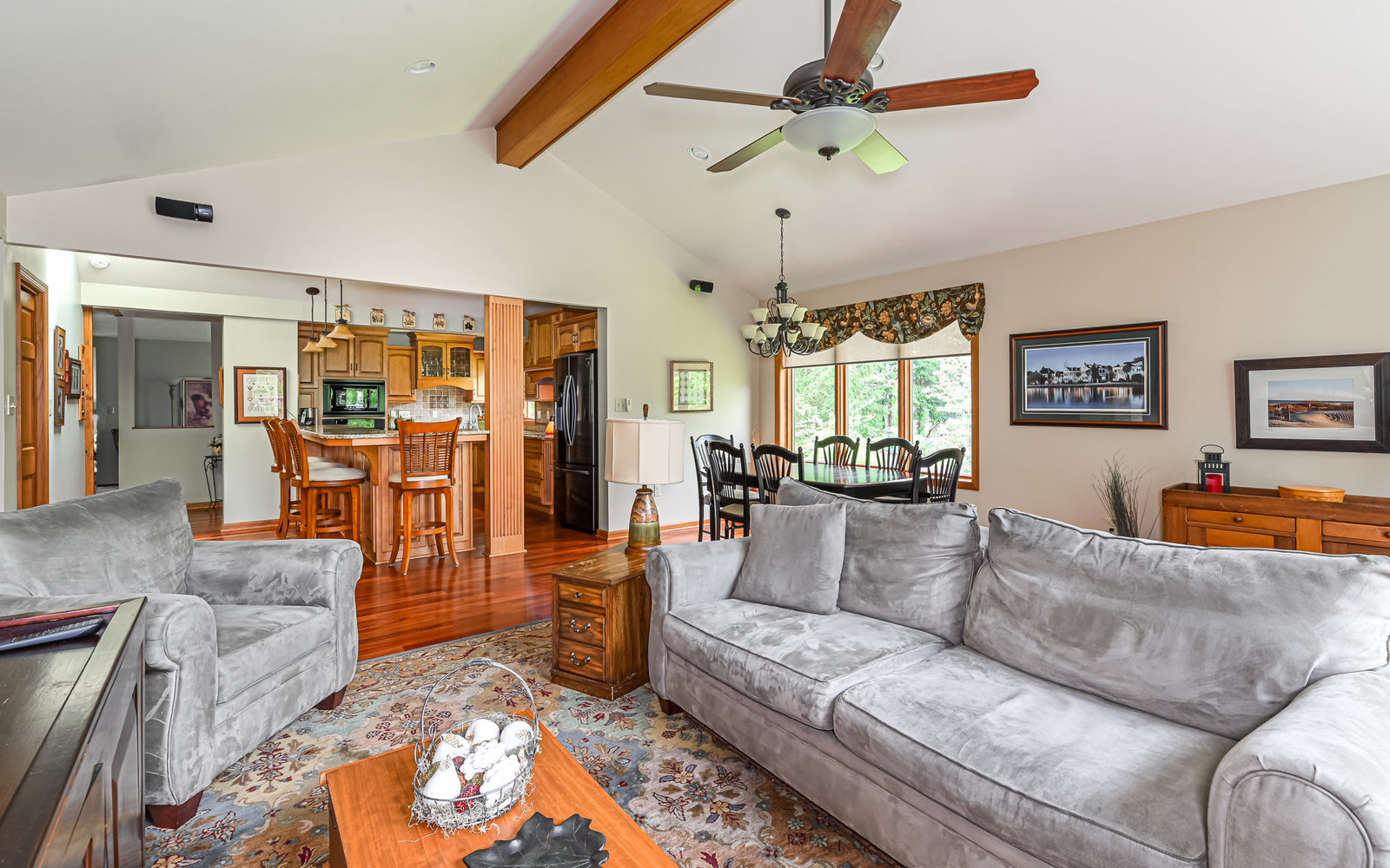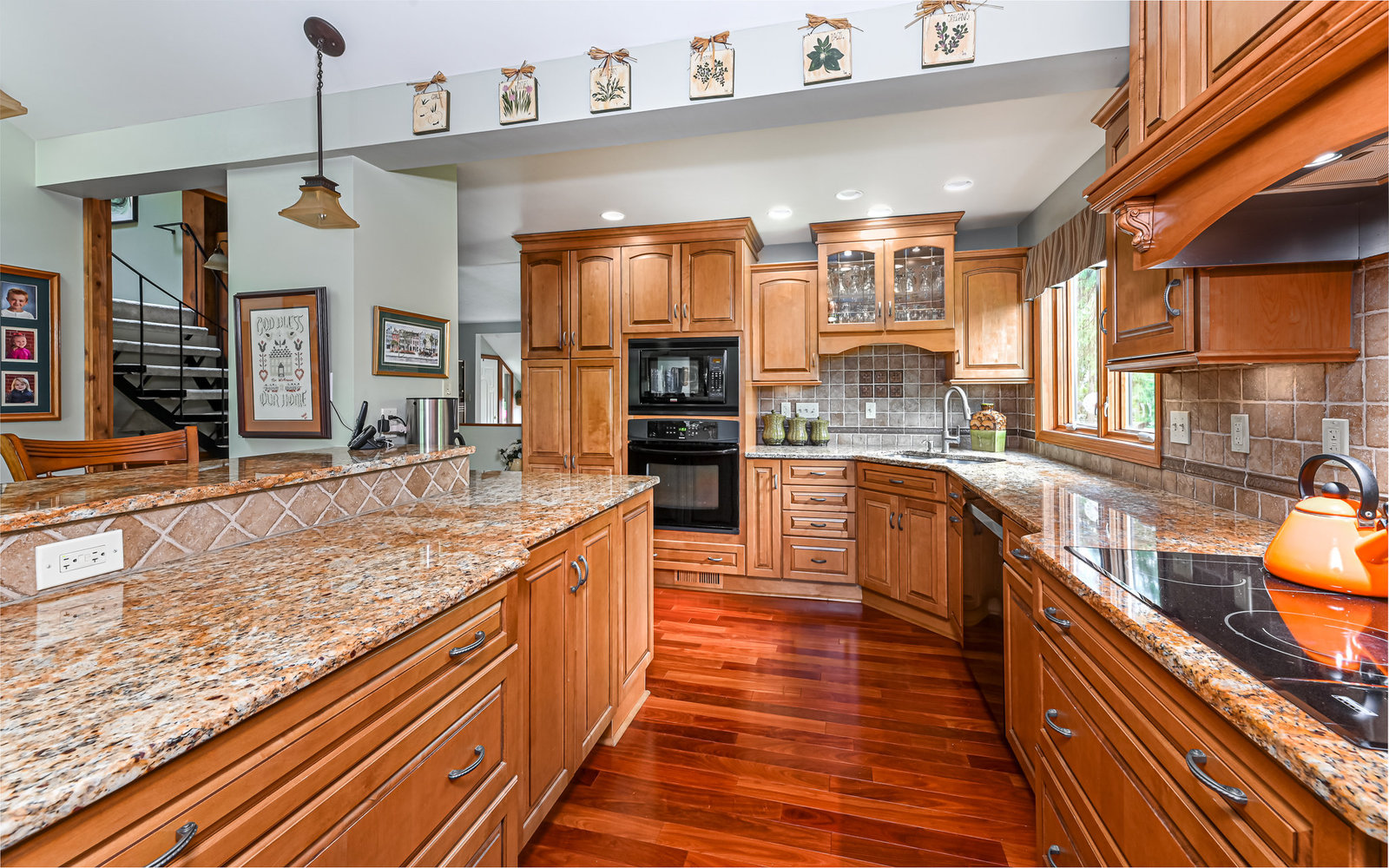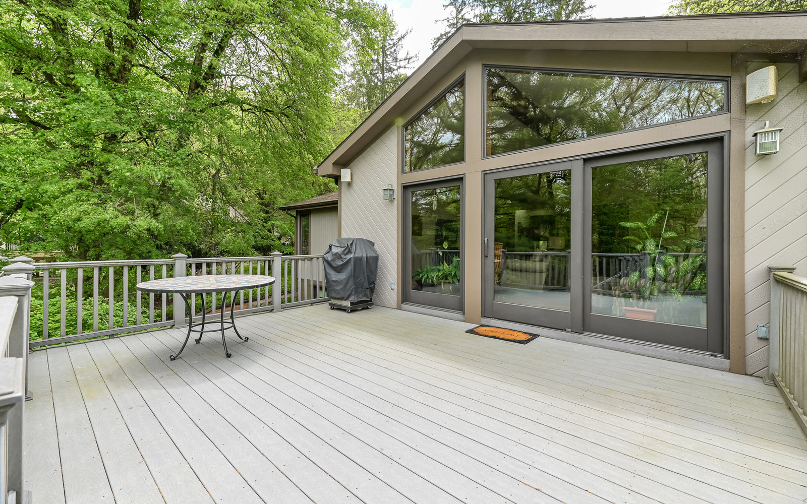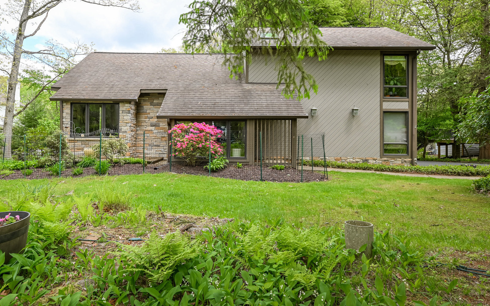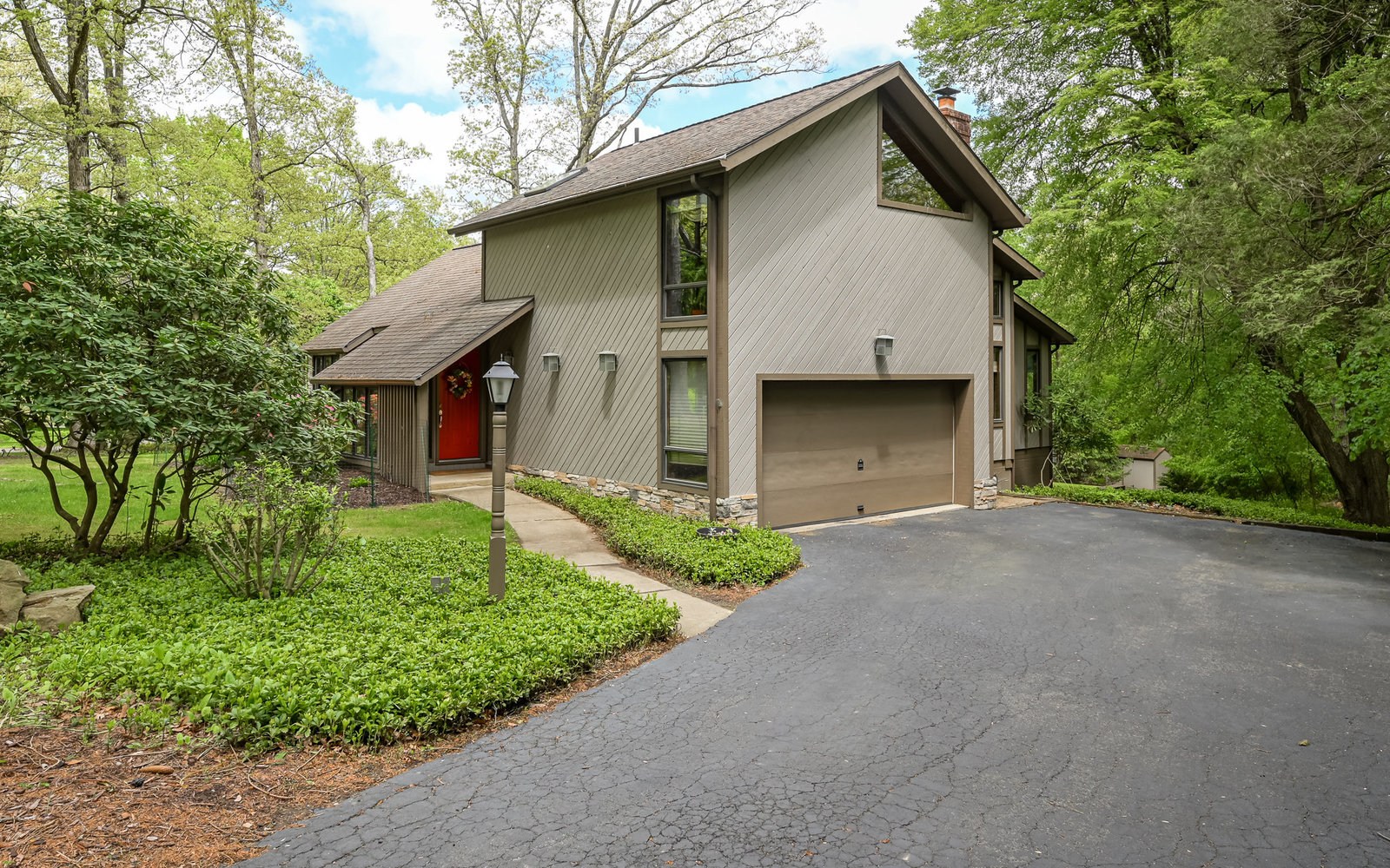 Gorgeous contemporary home in Bradford Woods - North Allegheny School District. Large windows allow ample natural light into this home's interior, while vaulted ceilings add a spacious feel, and mahogany hardwood floors bring warmth to the living spaces. The kitchen is a chef's dream, boasting granite counters, a breakfast bar with seating, and beautiful solid wood cabinetry with tons of storage. Entertain friends or gather around the stone fireplace in the great room. A sliding glass door leads outside to the large composite deck, complete with gas hook-up for grill. The owner's suite features a spa-like bath with a custom tile shower and a dual sink vanity, and a large walk-in closet. The finished lower level offers additional living space for recreation or relaxation with a full bath and with newer Anderson sliding doors to the patio area -perfect for enjoying the peace and tranquility of Bradford Woods.